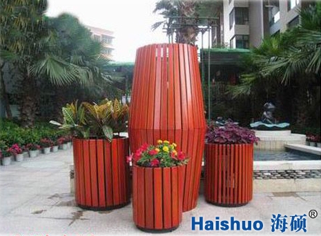 3、戶外花箱成型后,還要進行細致的人工打磨,進行戶外景觀防腐木花箱的最后一步—噴漆。