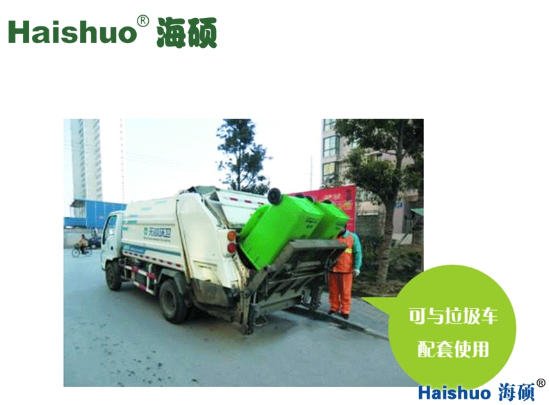 青島海碩 HS-240LG-YG 環(huán)衛(wèi)垃圾桶,全面加強(qiáng)的桶身能夠配合汽車升降機(jī),使掛車升降時(shí)不破損。