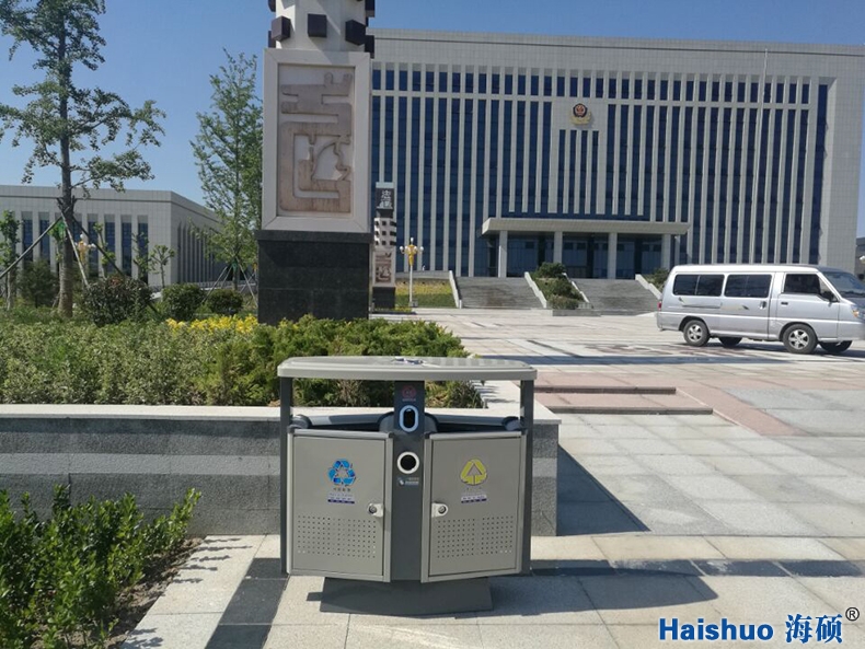青島海碩戶外分類果皮箱HS-02與普通垃圾桶比較而言,增加了桶身的強度,使之經(jīng)久耐用,并且美觀好看
