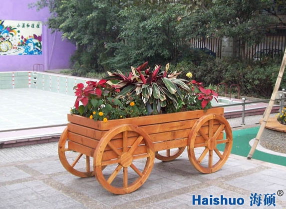 木材采用俄羅斯樟子松,先在烘窯里以70度左右的溫度烤15天以上。以殺菌除蟲,同時木材里面的水分降到10度以下,防止使用過程中變形。采用進口戶外油浸泡,油脂深入木材,程度保護木材.材色紋理美觀、刨面光滑,并具有芳香、耐腐、防蟲等特點。結構略粗,均勻;硬度中至大,強度高。生材加工容易,切面光滑,磨光性好,握釘力強。干燥處理后,經(jīng)機械和手工加工而成,表面多層戶外聚脂漆噴涂處理。