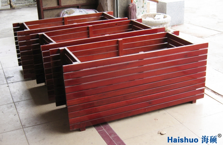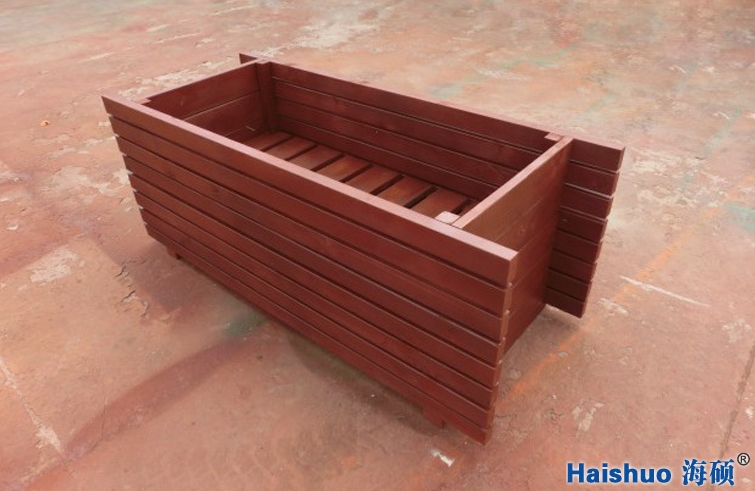 3、戶外花箱成型后,還要進行細致的人工打磨,進行戶外景觀防腐木花箱的最后一步—噴漆。