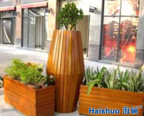 3、戶外花箱成型后,還要進行細致的人工打磨,進行戶外景觀防腐木花箱的最后一步—噴漆。