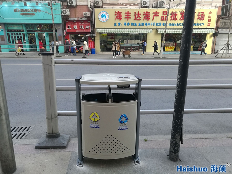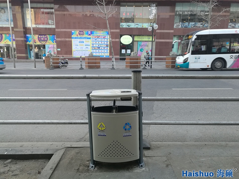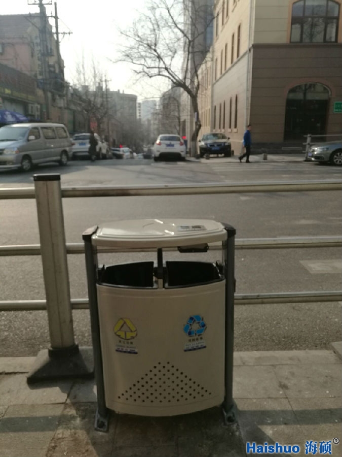 青島海碩戶外環(huán)保分類果皮箱HS-01,于普通垃圾桶比較而言,增加了桶身的強(qiáng)度,使之經(jīng)久耐用,并且美觀好看