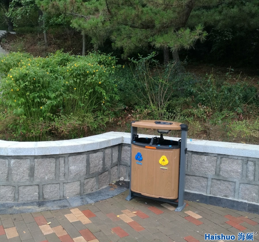 青島海碩戶外果皮箱HS-X-01A ,與普通垃圾桶比較而言,增加了桶身的強(qiáng)度,使之經(jīng)久耐用,并且美觀好看