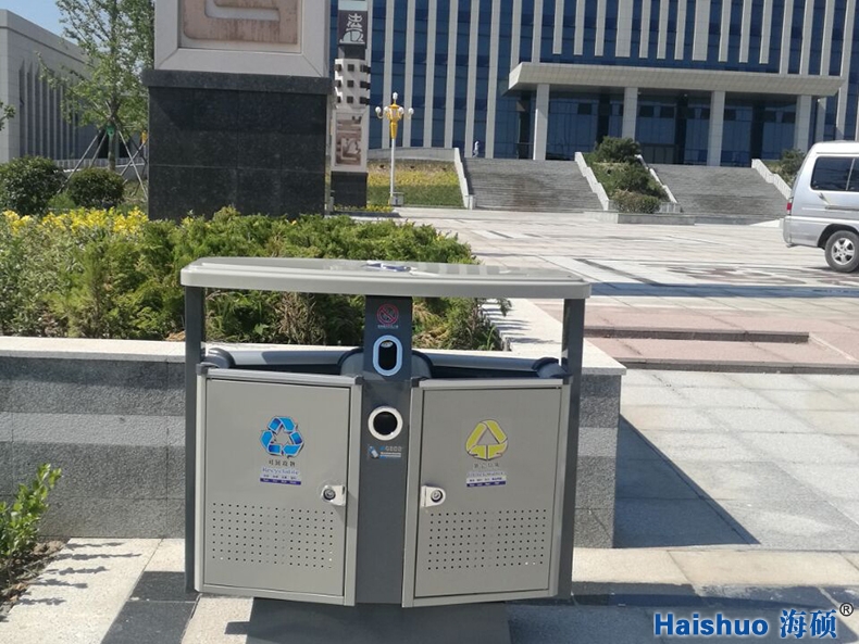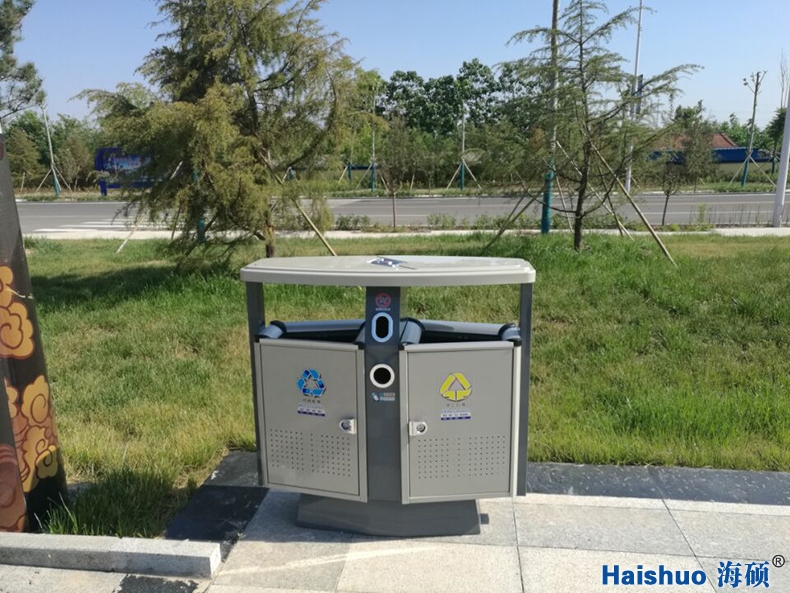 青島海碩戶外分類果皮箱HS-02與普通垃圾桶比較而言,增加了桶身的強度,使之經(jīng)久耐用,并且美觀好看
