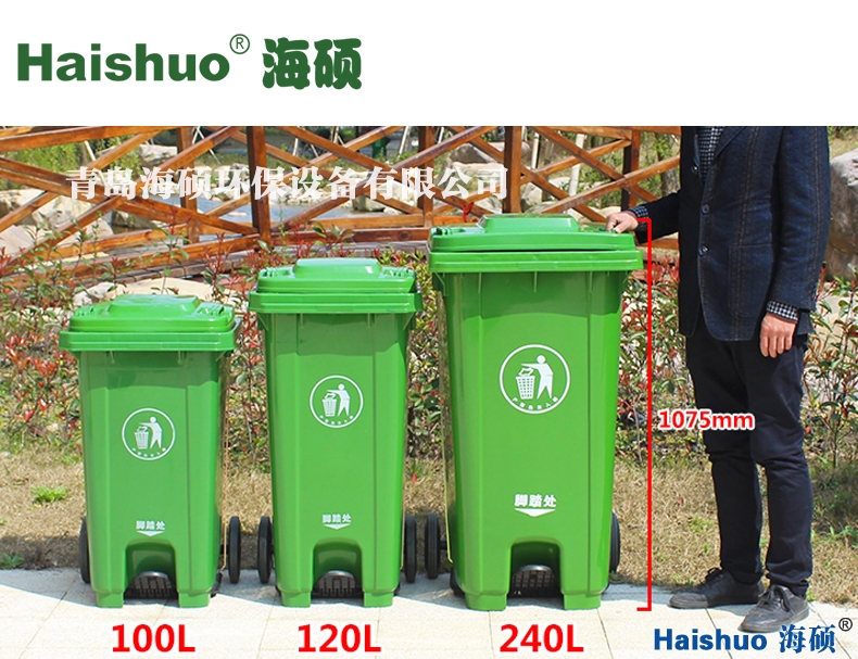 產(chǎn)品名稱:海碩環(huán)衛(wèi)加厚垃圾桶 ,240L環(huán)保塑料垃圾桶、戶外塑料垃圾箱、青島掛車?yán)皬S家