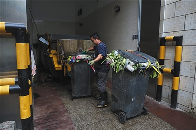 在海淀區(qū)蘇州橋西社區(qū),單獨設(shè)置了廚余垃圾收集站。該社區(qū)居委會主任李春燕介紹,社區(qū)500多戶居民每日可回收100多公斤的廚余垃圾,并由海淀區(qū)環(huán)衛(wèi)中心配置的廚余垃圾專用車統(tǒng)一運輸處理。