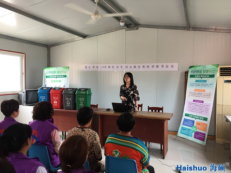 2019年7月6日-7日,恰逢大雨滂沱的周末。海碩環(huán)保垃圾分類宣講團(tuán)隊(duì)兵分五路,冒雨走進(jìn)城陽街道東郭莊社區(qū)、城陽街道仲村社區(qū)、城陽街道董村社區(qū)、城陽街道西旺疃社區(qū)、夏莊街道上山色峪社區(qū)等5個(gè)社區(qū),開展垃圾分類宣講活動(dòng)。